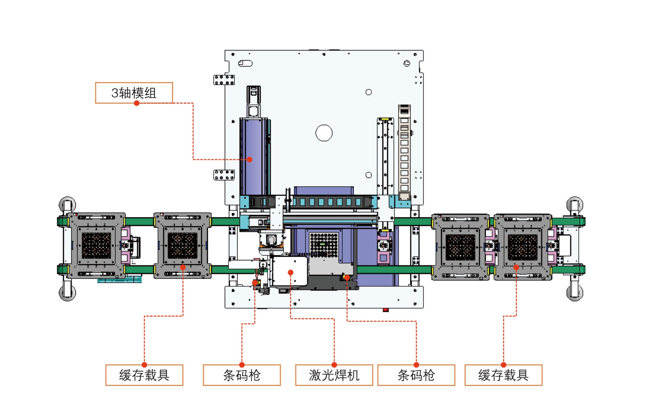 ●配套輸送線體左右各預留2個載具位做緩存位;